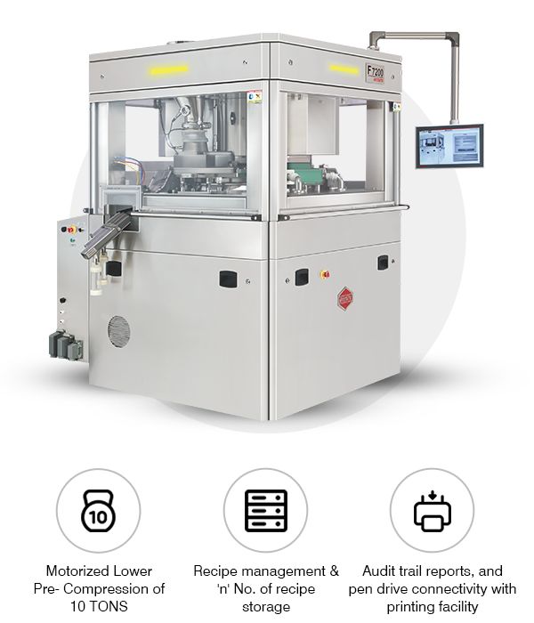 With the leading name in technology, FLUIDPACK offers a variety of machinery in an automatic tablet compression machine that suits the cGMP standards and is most suitable for Research and development, mass production, and clinic trials. The pill press machines are used for producing tablets and pills of uniform size and shape and weights. A tableting machine manufacturer determines the overall production cost, tooling strength, premature tooling failures. The product range is ideally suited for small and medium to large batches. The users get a reliable solution with tablet presses produced at FLUIDPACK as they feature exclusive novel technologies.