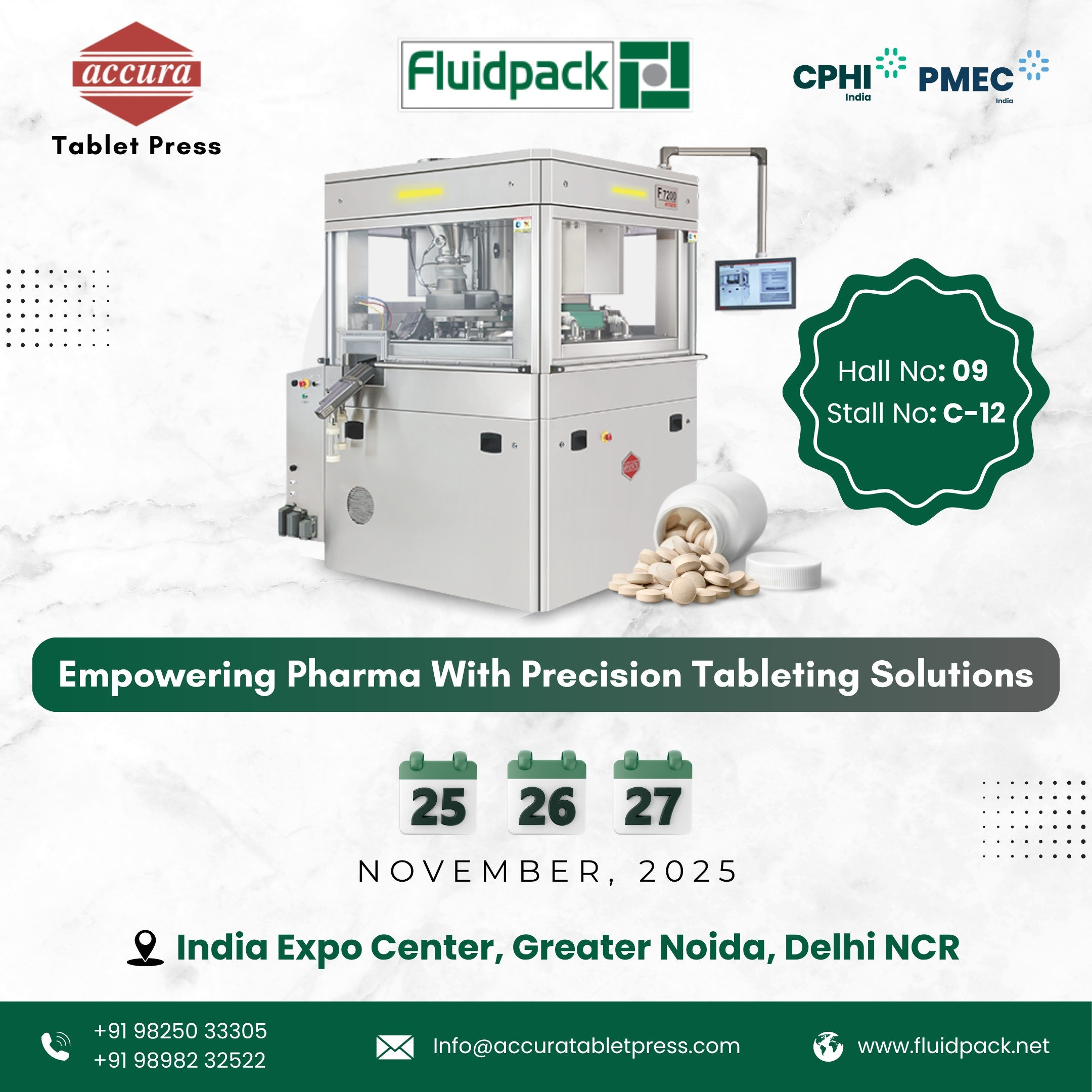 Fluidpack is a leading Tableting Machines, Roll Compactors, Allied Equipment, Punches & Dies Manufacturer & Supplier with objective to cater quality tablet press machines since 1983 under brand name “ACCURA”. Being consistent in offering customized, quality and varied range of hi-tech Tablet Press Machines, we have served more than 2250 esteem clients.